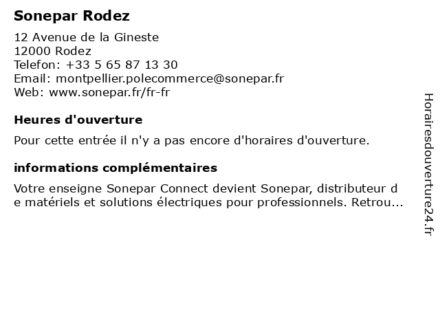 1 Sonepar Decazeville (Distance: 32,87 km) 20 Zone Industrielle de Fontvergnes, 12300 Decazeville decazeville, sonepar 2 CSO Connect - Groupe Sonepar (Distance: 56,80 km) 5 Rue Jean Henri Fabre, 81000 Albi bâtiment, connect, construction, cso, groupe, installations, services, sonepar, électricité |
