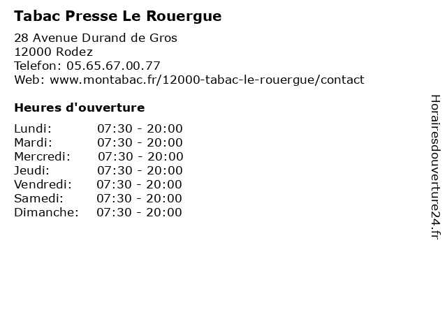 | Dimanche | 07:30-20:00 |