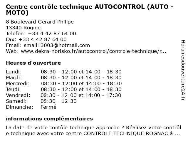 Description de l'entreprise :Préparer votre contrôle techniquePour préparer votre contrôle technique dans notre centre AUTOCONTROL de Rognac, vous pouvez vérifier en amont différents points comme les pneumatiques, la visibilité, le niveau d'huile ou encore l'habitacle. Pour tout savoir, consultez notre vidéo. Voir l'offre |