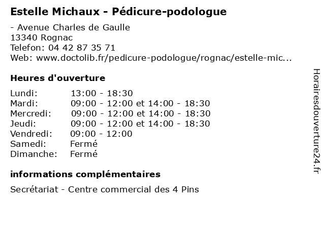 1 Delphine Dufrene - Pédicure-podologue - secretariat (Distance: 0,00 km) - Avenue Charles de Gaulle,, 13340 Rognac delphine, dufrene, médecin, médecine, médical, pharmaceutique, podologue, pédicure, secretariat, traitement 2 Céline Crapoulet-Laurent - Pédicure-podologue - secretariat (Distance: 0,00 km) - Avenue Charles de Gaulle,, 13340 Rognac crapoulet, céline, laurent, médecin, médecine, médical, pharmaceutique, podologue, podologuee, pédicure, secretariat, traitement 3 Delphine Dufrene - Pédicure-podologue - secrétariat (Distance: 0,00 km) s/n Avenue Charles de Gaulle, 13340 Rognac delphine, dr, dufrene, medical, podologue, pédicure, secrétariat 4 Marine Benard Olivier - Pédicure-podologue - secretariat (Distance: 0,99 km) 50 Boulevard Jean Jaurès,, 13340 Rognac benard, marine, médecin, médecine, médical, olivier, pharmaceutique, podologue, pédicure, secretariat, traitement 5 Vincent Jovenin - Pédicure-podologue (Distance: 3,76 km) 39 Avenue Jules Andraud, 13880 Velaux cheville, jovenin, orteil, pied, podologue, pédicure, vincent 6 Alexandra Fialon - Pédicure-podologue - secretariat (Distance: 4,40 km) 8 Avenue Camille Pelletan,, 13127 Vitrolles alexandra, fialon, médecin, médecine, médical, pharmaceutique, podologue, pédicure, secretariat, traitement |