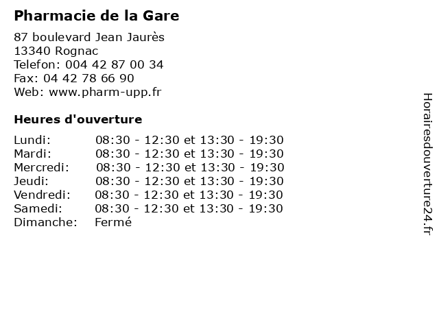 | Samedi | 08:30-12:30 et 13:30-19:30 |