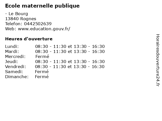| Mardi | 08:30-11:30 et 13:30-16:30 |