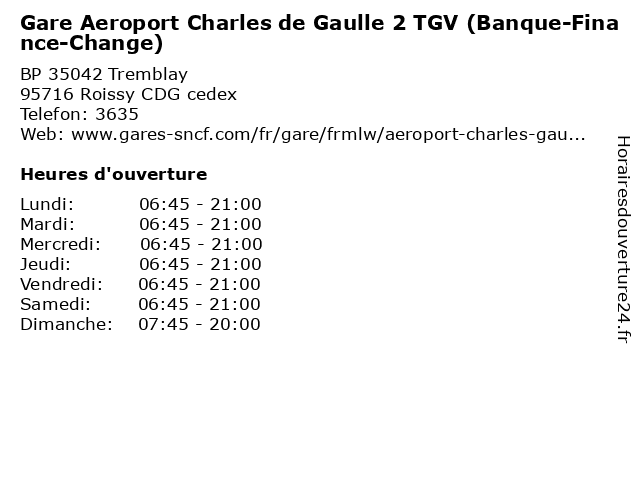 1 Gare Aeroport Charles de Gaulle 2 TGV (Distance: 0,00 km) BP 35042 Tremblay, 95716 Roissy CDG cedex aeroport, charles, de, gare, gaulle, services, station, tgv 2 Gare Aeroport Charles de Gaulle 2 TGV (Accueil) (Distance: 0,00 km) BP 35042 Tremblay, 95716 Roissy CDG cedex accueil, aeroport, charles, de, gare, gaulle, services, station, tgv 3 Gare Aeroport Charles de Gaulle 2 TGV (Billetterie) (Distance: 0,00 km) BP 35042 Tremblay, 95716 Roissy CDG cedex aeroport, billetterie, charles, de, gare, gaulle, services, station, tgv 5 Easy Finance (Distance: 9,46 km) 71-73 boulevard de l'Hôtel de Ville, 93600 Aulnay-sous-Bois assurance emprunteur, construction de maison, easy, finance, premier achat immobilier, renégociation de prêt, second achat 6 |