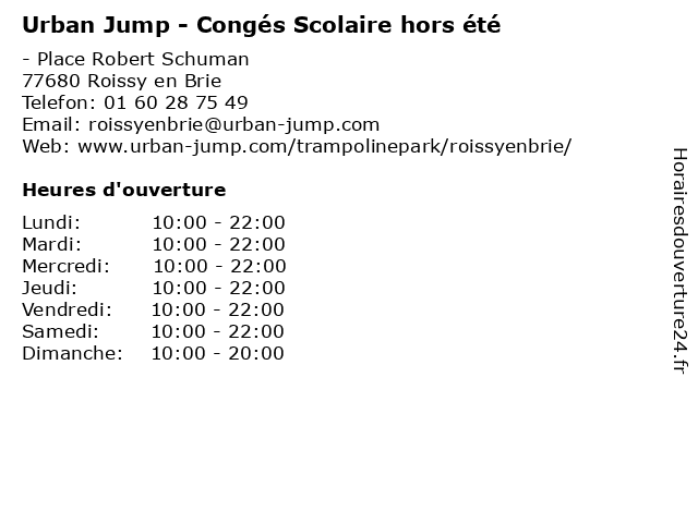 | Samedi | 10:00-22:00 |