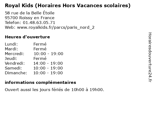 Termes de recherche pour Royal Kids (Horaires Hors Vacances scolaires):royal, horaires, enfants, kids, loisirs, vacances, parc, hors, scolaires |