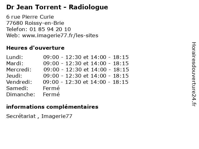 | Mardi | 09:00-12:30 et 14:00-18:15 |