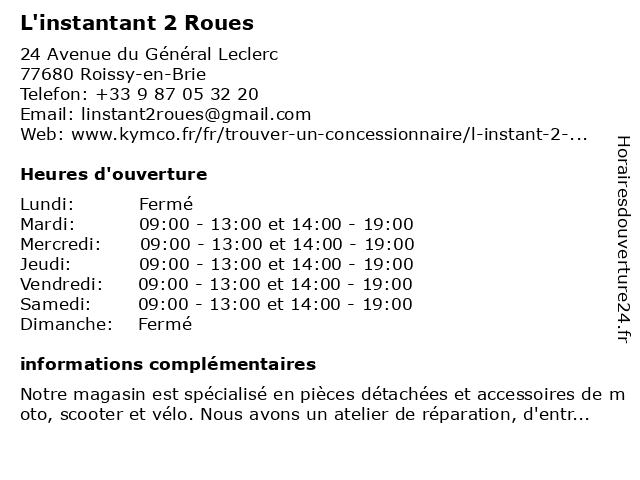 Samedi | 09:00-13:00 et 14:00-19:00 |