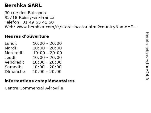 Dimanche | 10:00-20:00 |