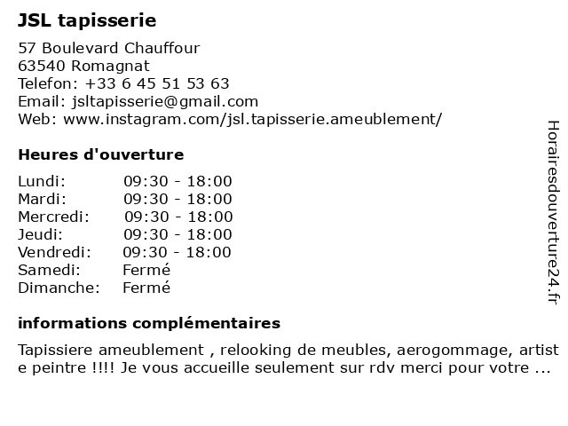 | Samedi | Fermé |
