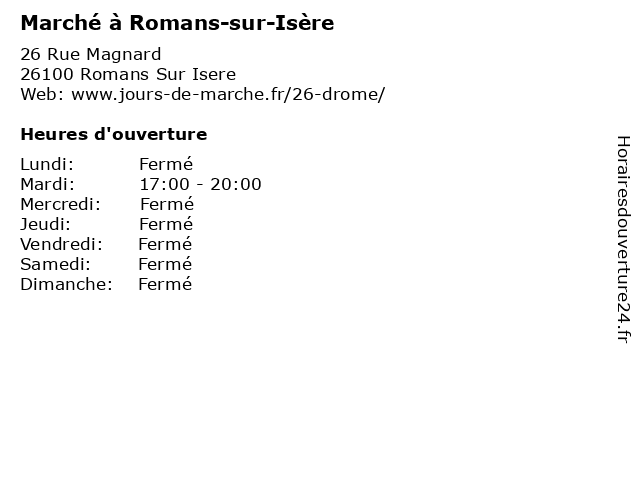 1 Marché à Romans-sur-Isère (Distance: 1,29 km) . Cours Pierre Didier, 26100 Romans Sur Isere frutas, hortalizas, isère, marché, mercado, romans, sur, verduras 2 Marché à Romans-sur-Isère (Distance: 1,68 km) . Place Jean Jaurès, 26100 Romans Sur Isere frutas, hortalizas, isère, marché, mercado, romans, sur, verduras 3 Marché à Romans-sur-Isère (Distance: 3,35 km) . Placa Hector Berlioz, 26100 Romans Sur Isere frutas, hortalizas, isère, marché, mercado, romans, sur, verduras 4 Vide Grenier à Romans-sur-Isère (Distance: 1,27 km) . Quai Ulysse Chevalier, 26100 Romans Sur Isere frutas, grenier, hortalizas, isère, mercado, romans, sur, verduras, vide 5 Contact Marché (Distance: 15,66 km) 105 Avenue du 8 mai 1945, 07300 Tournon Sur Rhone carrefour, contact, contact marché, marché, services, supermarchés 6 Marché à Valence (Distance: 16,18 km) . Place Lamartine, 26000 Valence frutas, hortalizas, marché, mercado, valence, verduras |