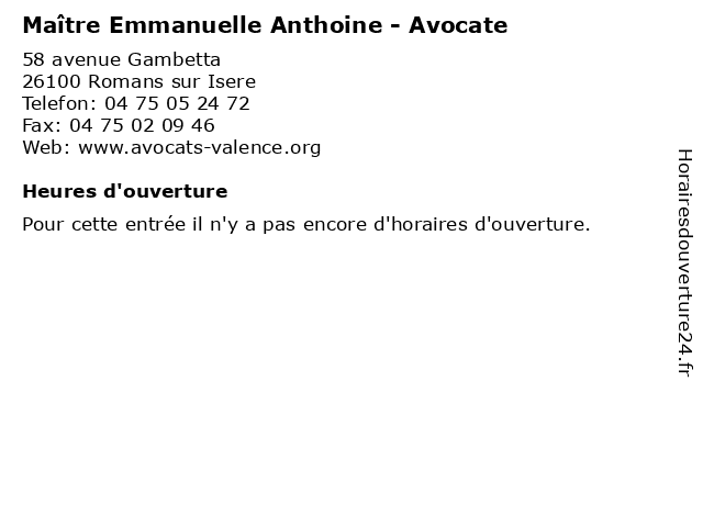 | Appeler Maître Emmanuelle Anthoine - Avocate | |