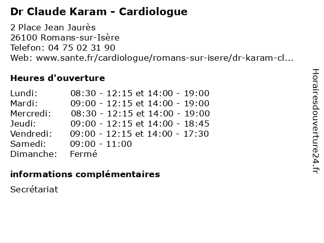 | Lundi | 08:30-12:15 et 14:00-19:00 |