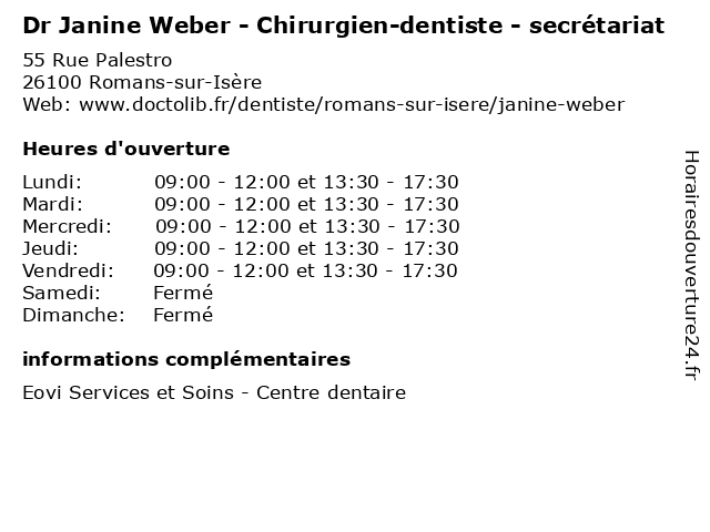 | Lundi | 09:00-12:00 et 13:30-17:30 |
