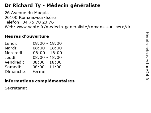 Termes de recherche pour Dr Richard Ty - Médecin généraliste:soin, medical, richard, ty, généraliste, docteur, médecin, dr |