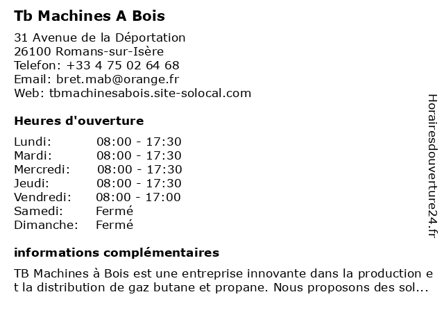 1 BPH Traitement De Bois Et Isolation (Distance: 0,70 km) 3 Rue Claude Bernard, 26100 Romans-sur-Isère bois, bph, de, et, isolation, traitement 2 V.D.B Valorisation Dechets Bois (Distance: 0,82 km) 63 Rue René Réaumur, 26100 Romans-sur-Isère bois, dechets, v.d.b, valorisation 3 Bois Bûches & Granulés (Distance: 2,13 km) 1365 route Louis Pasteur, 26300 Pizançon bois, buches, bûches, cheminées, granulés, ventes 5 Chausson Bois Couverture (Distance: 6,03 km) 110 Allée des baronnies, 26300 Bourg-de-Péage bois, chausson, couverture 6 VIGNE BOIS ENERGIE (Distance: 7,93 km) 265 Impasse des Frênes, 26600 Granges-les-Beaumont bois, energie, vigne |
