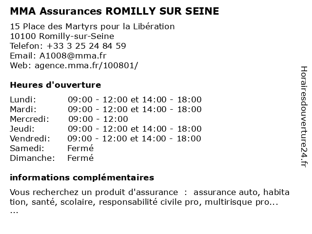 1 GMF Assurances (Distance: 0,08 km) 6 Rue Magenta, 10100 Romilly-sur-Seine assurance auto, assurance habitation, assurance santé, assurances, crédit, devis en ligne, gmf, prise de rendez-vous, prévoyance, épargne 2 MAAF Assurances ROMILLY (Distance: 0,27 km) 50 Rue de la Boule d'Or, 10100 Romilly-sur-Seine assurance, assurance auto, assurance habitation, assurance moto, assurance professionnelle, assurance prêt immobilier, assurances, crédit auto, maaf, mutuelle, mutuelle santé, romilly 3 GAN ASSURANCES ROMILLY SUR SEINE (Distance: 0,41 km) 56 Rue Gornet Boivin, 10100 Romilly-sur-Seine assurances, gan, romilly, seine, sur 4 Assurances Bertin deffontaines (Distance: 0,62 km) 14 Avenue Pierre Brossolette, 10100 Romilly-sur-Seine assurances, bertin, deffontaines 5 Gan Assurances (Distance: 15,96 km) 6 avenue du Maréchal Leclerc, 10400 Nogent sur Seine agence, assurances, courtier, gan, protection, sinistres 6 MMA NOGENT SUR SEINE (Distance: 16,60 km) 4 Avenue du Gén de Gaulle, 10403 Nogent-sur-Seine mma, nogent, seine, sur |