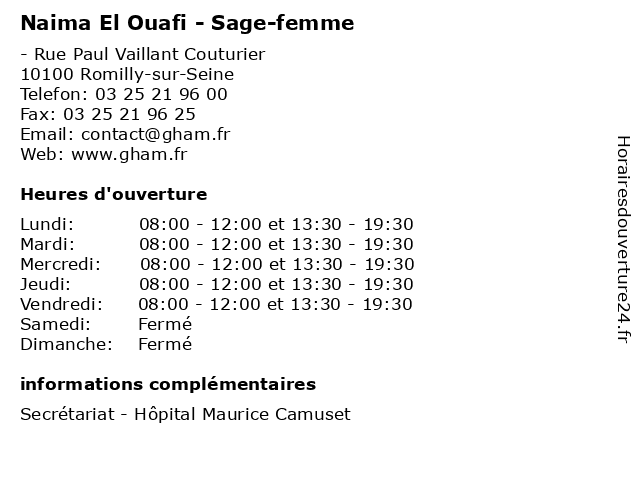 | Mercredi | 08:00-12:00 et 13:30-19:30 |