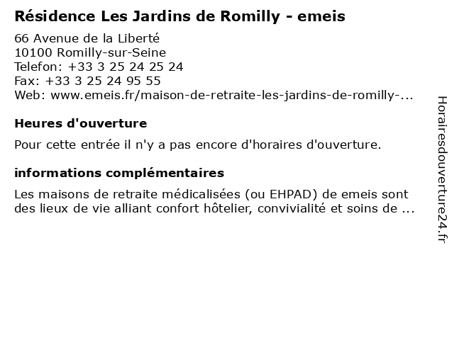 | Appeler Résidence Les Jardins de Romilly - emeis | |