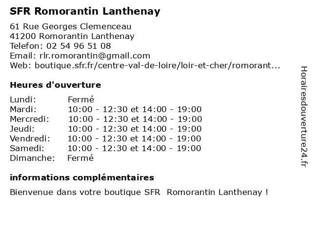 Termes de recherche pour SFR Romorantin Lanthenay:romorantin, sfr, lanthenay, compagnie de téléphone, vente et installation du câble et du satellite, magasin de téléphones mobiles |