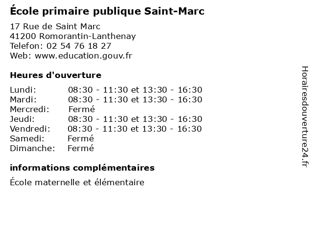 | Mardi | 08:30-11:30 et 13:30-16:30 |