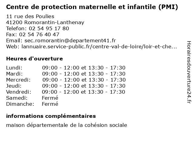 | Lundi | 09:00-12:00 et 13:30-17:30 |