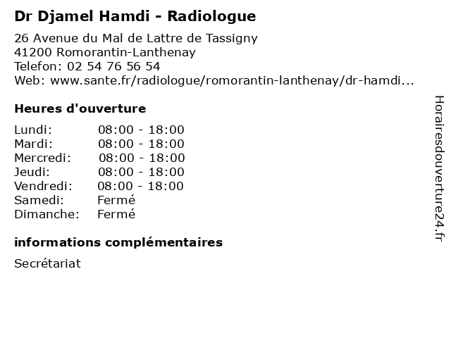1 Centre d'Imagerie Médicale du Mail (Distance: 0,08 km) 26 Avenue de Lattre de Tassigny, 41200 Romorantin-Lanthenay centre, d'imagerie, du, examens, imagerie, mail, médicale 2 Dr Jean-Marie Biset - Radiologue (Distance: 1,03 km) 96 Rue des Capucins, 41200 Romorantin-Lanthenay biset, diagnostique, dr, imagerie, jean, marie, radiologie, radiologue, thérapeutique 3 Service d'imagerie médicale (Centre Hospitalier Simone Veil) (Distance: 40,44 km) Mail Pierre Charlot, 41000 Blois centre, d'imagerie, hospitalier, médicale, service, simone, veil 4 Dr Chantal Marchand - Radiologue (Distance: 41,60 km) 1 Rue du Pr Philippe Maupas, 41260 La Chaussée-Saint-Victor chantal, diagnostique, dr, imagerie, marchand, radiologie, radiologue, thérapeutique 5 Dr Loic Tudoret - Radiologue (Distance: 47,20 km) 18 Rue des Relais, 45190 Beaugency diagnostique, dr, imagerie, loic, radiologie, radiologue, thérapeutique, tudoret 6 Dr Jacques Lacoste - Radiologue (Distance: 48,73 km) - Avenue Jean Bonnefont, 36105 Issoudun blanche, centre, de, diagnostique, dr, hospitalier, imagerie, issoudun, jacques, la, lacoste, radiologie, radiologue, thérapeutique, tour |