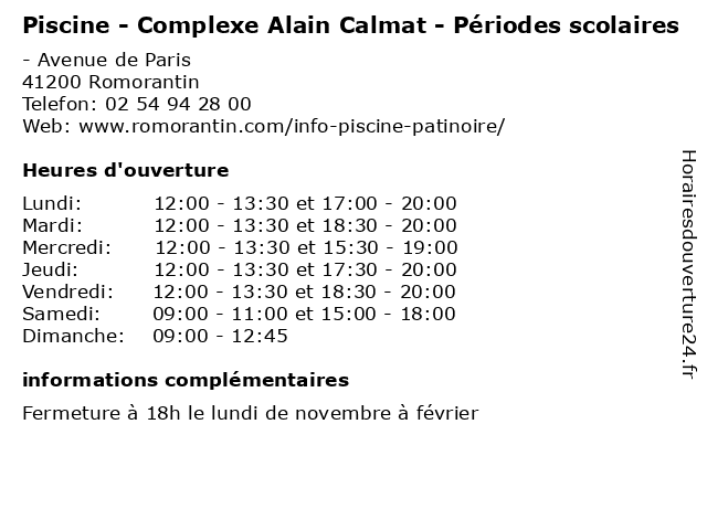 | Mercredi | 12:00-13:30 et 15:30-19:00 |