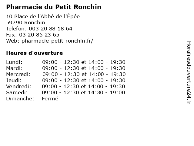 | Lundi | 09:00-12:30 et 14:00-19:30 |