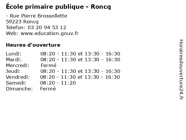 | Mardi | 08:20-11:30 et 13:30-16:30 |