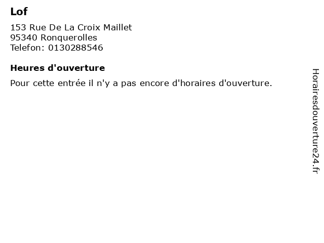 1 LOF Chambly - Traiteur (Distance: 1,80 km) 2 Rue Henri Becquerel, 60230 Chambly bar, bistro, bistrot, brasserie, café, chambly, lof, pub, restaurant, restauration, resto, traiteur 2 Stéphane Lof - Ostéopathe (Distance: 40,60 km) 8 Rue de Vaugirard, 78450 Villepreux lof, osteo, osteopathe, ostéopathe, sante, soins, stephane, stéphane 4 Six Lof Pizza (Distance: 55,92 km) 15bis avenue de Provence, 91170 Viry-Châtillon lof, pizza, pizzeria, restaurants, six |