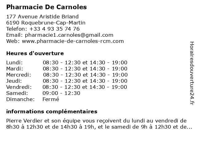| Lundi | 08:30-12:30 et 14:30-19:00 |