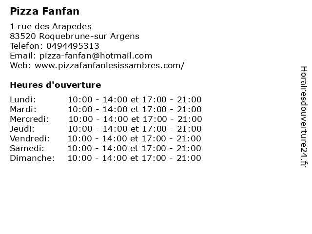 | Vendredi | 10:00-14:00 et 17:00-21:00 |