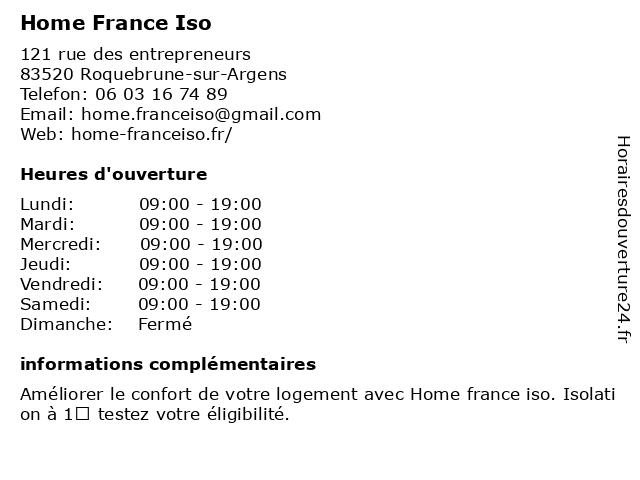 1 France Mobil-Home (Distance: 4,73 km) 2740 Route Départementale 4, 83600 Fréjus chalets, entreprise, fabricant, fabrication, france, home, installation, mobil, mobil-home, société 3 ENGIE Home Services (Distance: 5,27 km) 40 Chemin des Vernèdes, 83480 Puget-sur-Argens engie, home, services 4 Home Salons (Distance: 5,27 km) 97 Boulevard Colonel Dessert, 83480 Puget sur Argens cuir, decoration, home, mueble, salons, tissu 5 New Home - Segaar Astrid (Distance: 8,33 km) 1 route du Golf, 83520 Roquebrune-sur-Argens agence, astrid, gestion, home, immobilier, location, new, segaar, transaction, vente 6 Green Acres - Home Sud Immobilier (Distance: 10,80 km) 16 rue des Forces Françaises Libres, 83600 Frejus acres, agency, agent, apartment, green, home, immobilier, real estate, sud |