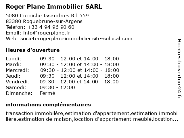| Lundi | 09:30-12:00 et 14:00-18:00 |