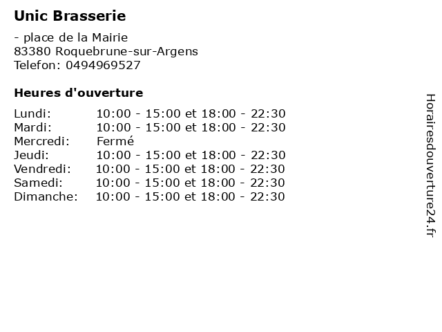 Horaires d'ouverture |