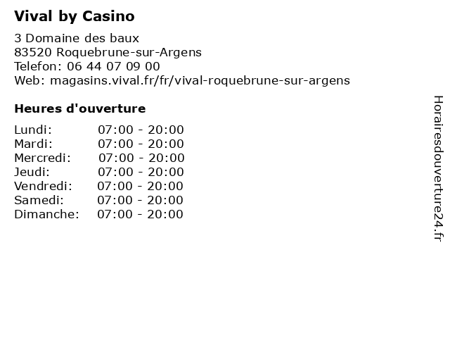 1 Vival By Casino (Distance: 6,55 km) 3401 Rue des Combattants d'Afrique du Nord, 83600 Fréjus alimentation, by, casino, distributeur alimentaire, supermarché, supérette, vival, épicerie 2 Vival by Casino (Distance: 10,50 km) 3435 Boulevard Jacques Baudino, 83700 Saint-Raphaël by, casino, droguerie, d’hypermarchés, frais, fruits et légumes, hygiène, parfumerie et autres produits non alimentaires., surgelés, vival, épicerie 3 Vival By Casino (Distance: 11,47 km) - Avenue des Golfs, 83530 Agay alimentation, by, casino, distributeur alimentaire, supermarché, supérette, vival, épicerie 4 Vival By Casino (Distance: 16,73 km) - Les Restanques, 83310 Grimaud alimentation, by, casino, distributeur alimentaire, supermarché, supérette, vival, épicerie 5 Vival (Distance: 2,86 km) 1 Avenue Pierre Puget, 83370 ST AYGULF bread, deli, fish shop, gas bottles, photocopy, removing packages, vival, wine cellar 6 Casino Shop (Distance: 4,11 km) 1031 Avenue de La Corniche Azur, 83370 Saint-Aygulf alimentaire, alimentation, casino, courses, distributeur, shop, supermarché, supérette, épicerie |