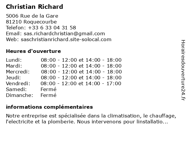 | Samedi | Fermé |