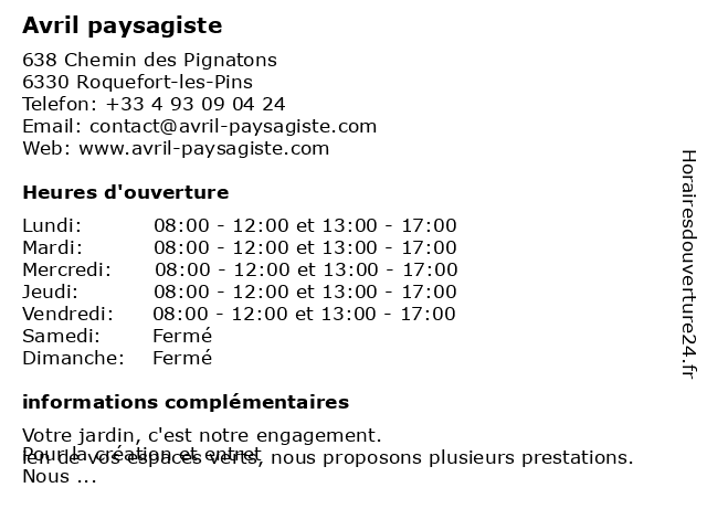 | Lundi | 08:00-12:00 et 13:00-17:00 |