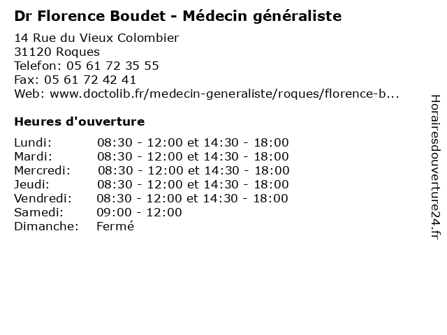 | Lundi | 08:30-12:00 et 14:30-18:00 |