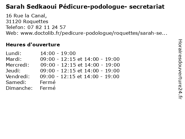 | Mardi | 09:00-12:15 et 14:00-19:00 |
