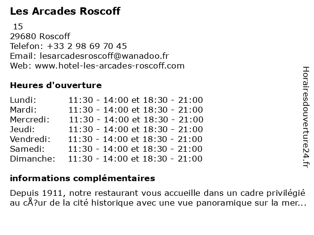 | Dimanche | 11:30-14:00 et 18:30-21:00 |