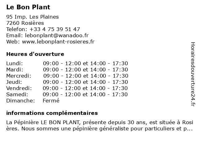 | Samedi | 09:00-12:00 et 14:00-17:30 |