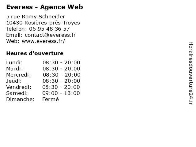 | Vendredi | 08:30-20:00 |