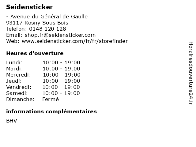 1 Seidensticker (Distance: 10,57 km) 40 Boulevard Haussmann, 75009 Paris hommes, mode, prêt à porter, seidensticker, vêtements 2 Seidensticker (Distance: 10,77 km) 52 Rue de Rivoli, 75004 Paris hommes, mode, prêt à porter, seidensticker, vêtements 3 Seidensticker (Distance: 11,24 km) 1 Place Michel Debre, 75006 Paris accessoires, boutique, mode, prêt à porter, sacs, seidensticker, vêtements 4 Seidensticker (Distance: 26,83 km) - Centre Commercial Parly 2, 78150 Le Chesnay hommes, mode, prêt à porter, seidensticker, vêtements 5 Seidensticker (Distance: 30,10 km) 3 Allee du Preambule, 77127 Lieusaint hommes, mode, prêt à porter, seidensticker, vêtements 6 Bel Chou's (Distance: 0,00 km) n/a Avenue du Général de Gaulle, 93117 Rosny-sous-Bois accessoires, bel, chaussures, chou's, chou’s, magasin, mode, prêt à porter |
