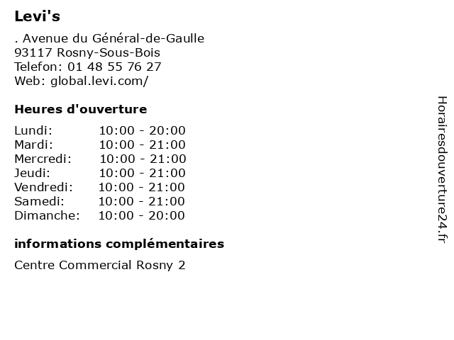 1 LEVI'S (Distance: 9,66 km) 51 RUE DE RIVOLI, 75001 PARIS accessoires, boutique, levi's, mode, shopping, vêtements 2 Levi's (Distance: 9,92 km) 101 Porte Berger, 75045 Paris chaussures, levi's, lingerie, mode enfant, mode femmes, mode hemmes, sport 3 LEVI'S (Distance: 10,05 km) 15 BOULEVARD SAINT-MICHEL, 75006 PARIS accessoires, boutique, levi's, mode, shopping, vêtements 4 Levi's (Distance: 10,39 km) 30 Avenue d'Italie, 75013 Paris cafe, enfants.chaussures, levi's, lingerie, mode hemmes, mode homme, restaurant 5 Levi's (Distance: 11,32 km) 8/9 Quai du Chatelier, 93450 L'Ile Saint Denis beaute, chaussures, levi's, lingerie, mode enfants, mode femmes, mode hommes, sport 6 Levi's (Distance: 11,40 km) 101 Avenue du Général de Gaulle, 94012 Creteil alimentation, beauté & santé, culture & loisirs, enfants, high-tech, levi's, maison & déco, mode, restaurants |