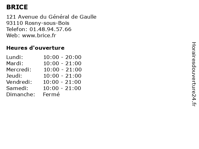 | Mercredi | 10:00-21:00 |