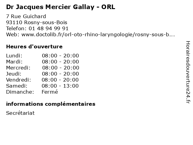 | Mercredi | 08:00-20:00 |