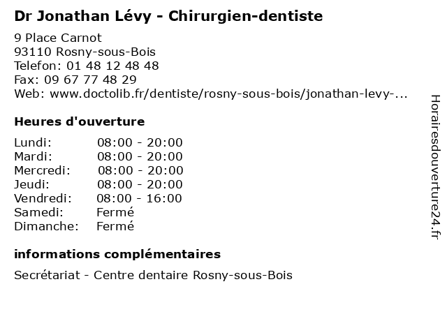 1 Dr Jonathan Lévy - Chirurgien-dentiste (Distance: 5,18 km) 42 Rue de Paris, 93260 Les Lilas chirurgie, chirurgien, dentaire, dentiste, dr, jonathan, levy, lévy 2 Dr Jonathan Coyssi - Chirurgien-dentiste (Distance: 0,17 km) 30 Rue du Général Gallieni, 93110 Rosny-sous-Bois chirurgie, chirurgien, coyssi, dentaire, dentiste, dr, jonathan 3 Maître Jonathan Alory - Avocat (Distance: 2,23 km) 10 place de la République, 93140 Bondy alory, avocat, avocats, civils, droits, jonathan, juridiques, maître 5 6 Dr Jonathan Costa - Chirurgien-dentiste (Distance: 3,45 km) 98 Rue de la République, 93230 Romainville chirurgien, costa, dentaire, dentiste, dr, implantologie, jonathan, parodontologie |