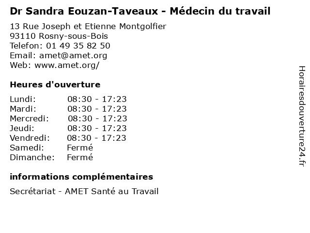1 Dr Sandrine Adam-Ramires - Médecin du travail (Distance: 0,00 km) 13 Rue Joseph et Etienne Montgolfier, 93110 Rosny-sous-Bois adam, consultation, docteur, dr, du, med, medecine, medical, médecin, ramires, sandrine, traitement, travail 2 École maternelle publique Travail (Distance: 4,85 km) 4 Rue Girardot, 93170 Bagnolet cours, education, maternelle, publique, services, travail, École, école 3 ACMS - Centre de Santé au Travail (Distance: 6,89 km) 4 Avenue Marcel Dassault, 93350 Le Bourget a.c.m.s, acms, au, bilans, centre, de, santé, travail 4 ACMS - Centre de Santé au Travail (Distance: 7,03 km) 50 Rue des Maraichers, 75020 Paris acms, au, bilan, centre, de, santé, travail 5 SEST - Centre de Santé au Travail (Distance: 7,43 km) 72 rue Docteur Arnold Netter, 75012 Paris au, bilans, centre, de, santé, sest, travail 6 ACMS - Centre de Santé au Travail (Distance: 7,64 km) 360 Rue des Pyrénées, 75020 Paris acms, au, bilan, centre, de, santé, travail |
