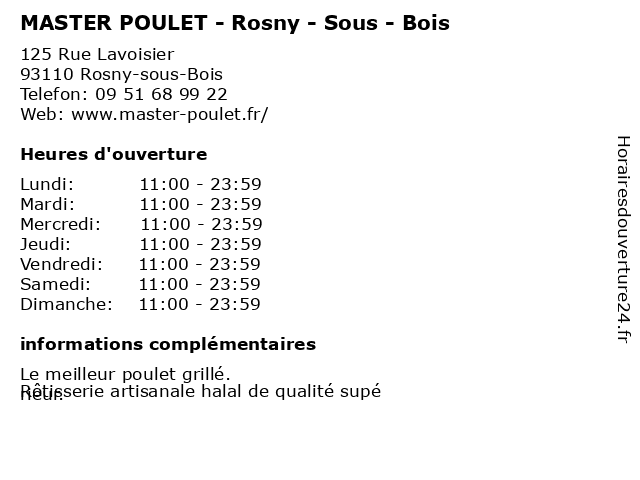 Termes de recherche pour MASTER POULET - Rosny - Sous - Bois:bois, sous, rosny, restaurants, master, fast-food, poulet, service de livraison de restaurant, restaurant de grillades |